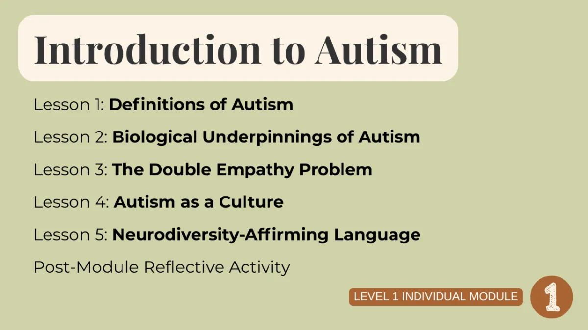 An adjustment course for those who have recently self-identified or been diagnosed as Autistic. Learn about Autism from a Neurodiversity-affirming lens and begin the journey of self-discovery and advocating for your needs.